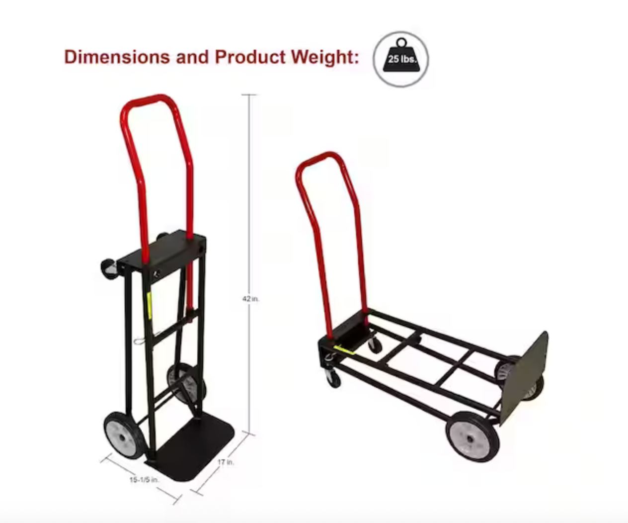 Convertible Hand Truck. Can be used as a dolly or converted into a push truck. 2 years old in like new condition. Used less than 10 times. Brand is Milwaukee. Measurements attached.